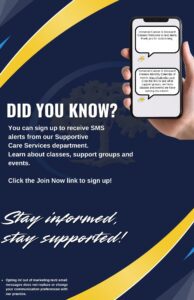 Sign up for SMS updates to receive the latest information on our wellness classes, support groups, and upcoming events. Join now