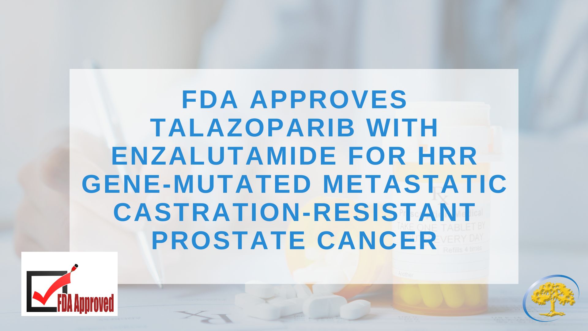 FDA approves talazoparib with enzalutamide for HRR gene-mutated metastatic castration-resistant prostate cancer.