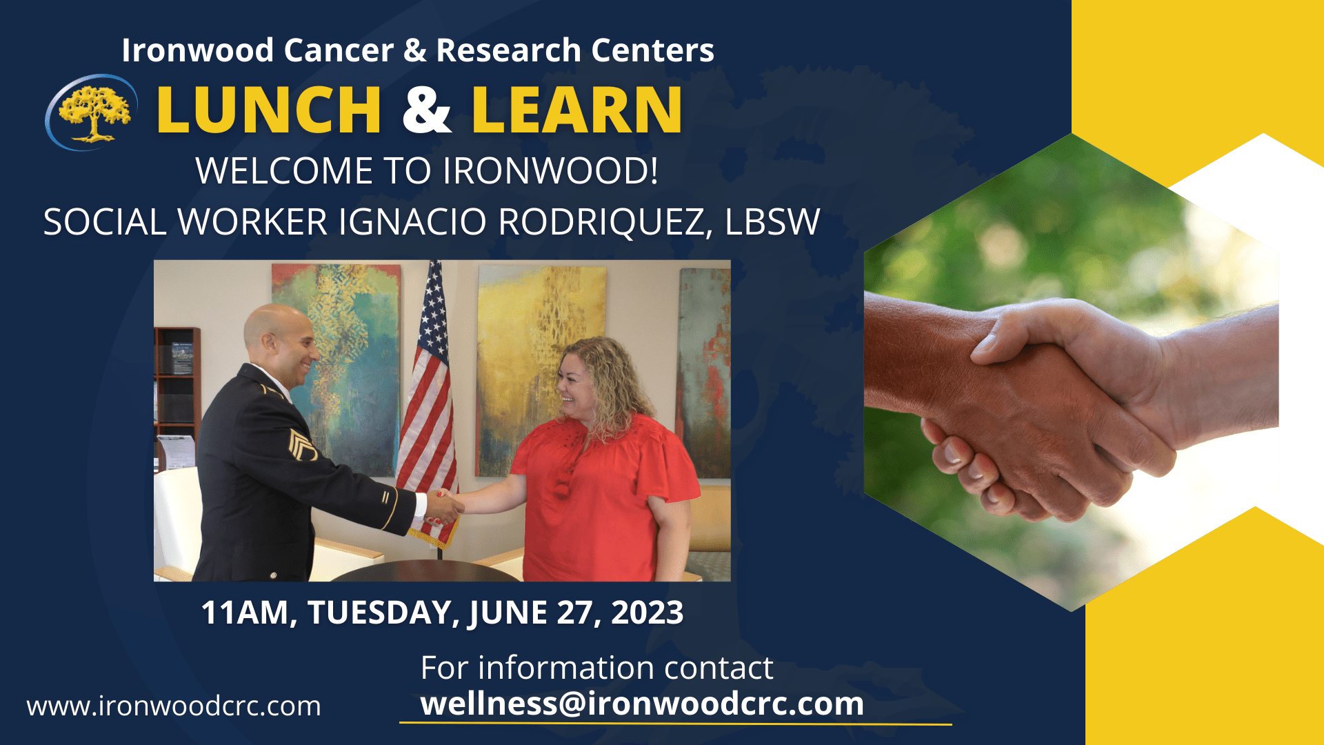 The Virtual Lunch & Learn “Introducing Social Worker Ignacio Rodriquez, LBSW” was recorded for Tuesday, June 27, 2023. We would like to thank the Ironwood Supportive Care Services Department, Ignacio Rodriquez, and Nicole McCallister for this video.