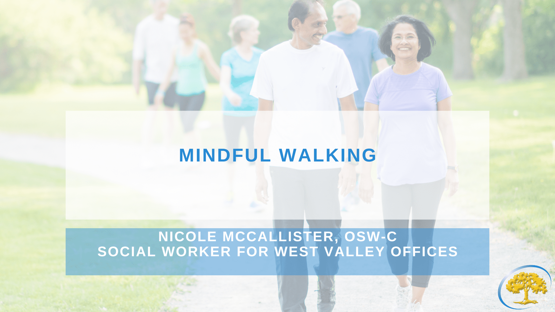 Mindful walking is more than just taking a walk around the block, in the back yard, or even at a park. It includes focusing on your breathing, how your body feels, noises you hear such as birds, and smells you may encounter such as orange blossoms in bloom or a barbecue. Sometimes a mindful walk can be described by the journey, not the destination.