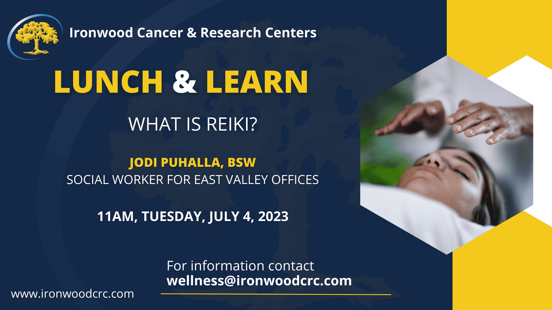 The Virtual Lunch & Learn “What is Reiki?” was recorded for Tuesday, July 4, 2023. We would like to thank the Ironwood Supportive Care Services Department and Social Worker Jodi Puhalla for this video.