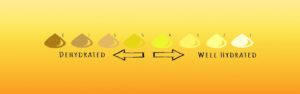 If you are more active, spending more time outdoors or are going through cancer treatment the goal me be as high as or higher than 12- 8 oz. glasses per day. A good way to tell if you are properly hydrated is to check your urine. If it is colorless or light yellow, you are likely in good shape. If it is amber or dark yellow, you are likely at risk for dehydration.